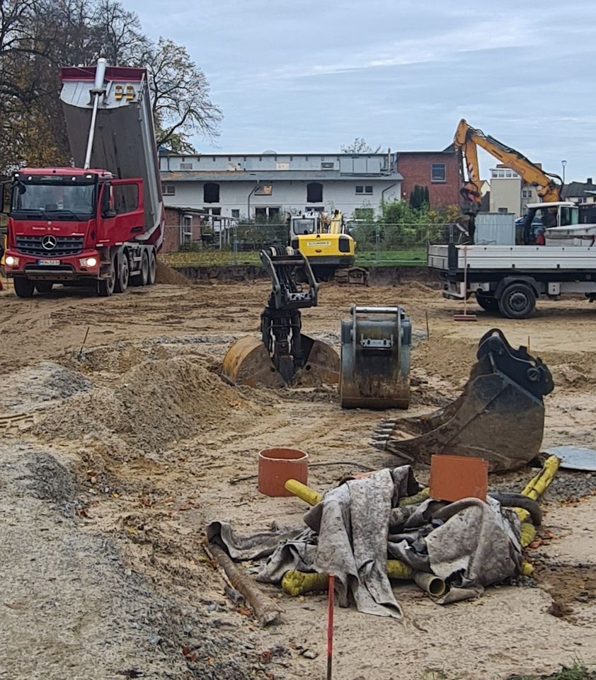 Nun rollen endlich die Bagger und die Tiefbauarbeiten nehmen Fahrt auf.